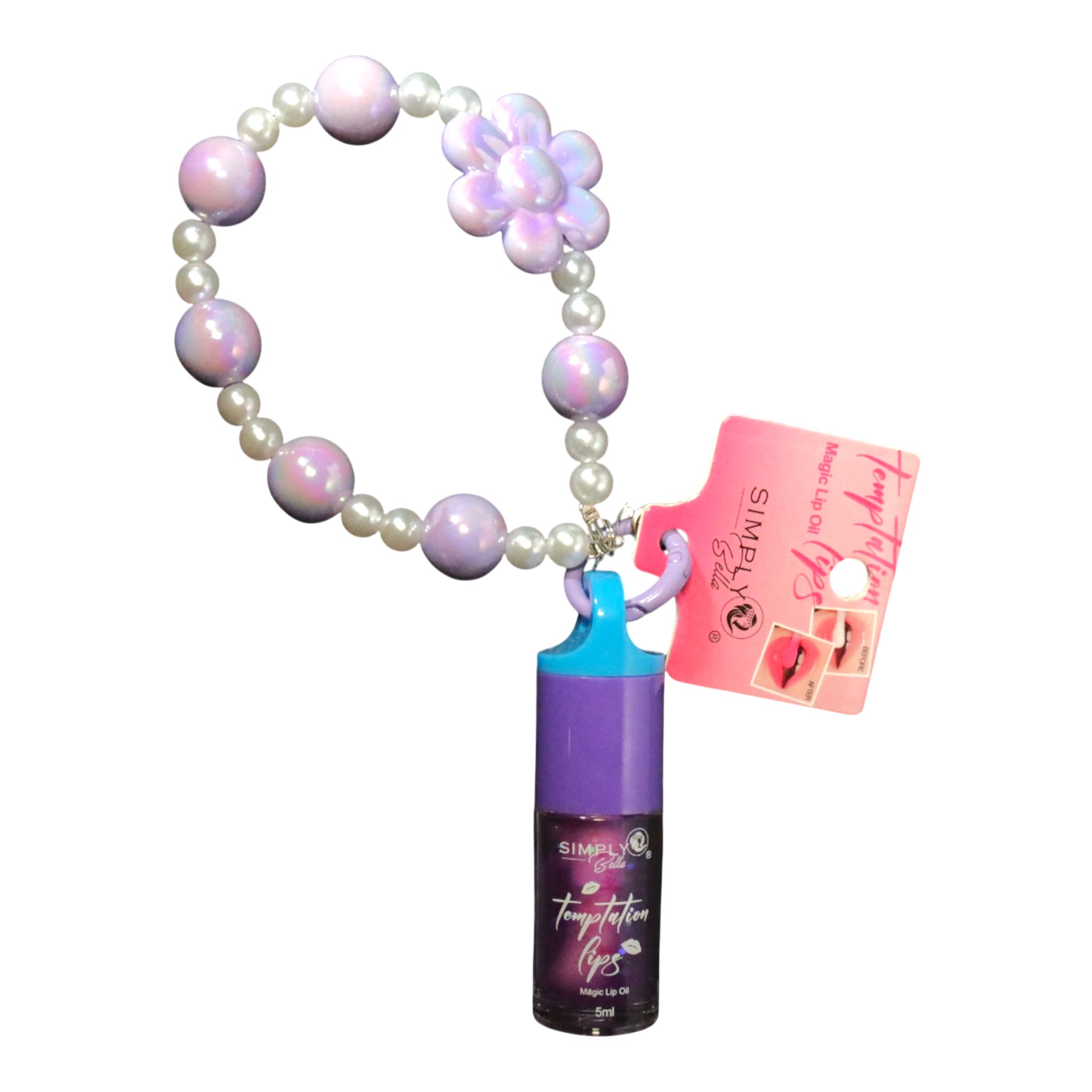 Add a little magic to your beauty routine with the Simply Bella Temptation Lips Magic Lip Oil Collection. Each lip oil comes in a vibrant bottle adorned with a playful beaded bracelet that doubles as a fashion accessory. These color-changing oils react to your body’s natural pH to give you a personalized tint while nourishing your lips with a glossy, non-sticky finish.